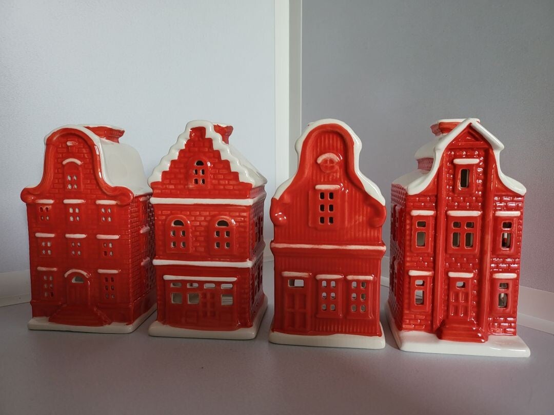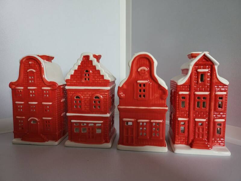 Omschrijving : Leuke verzameling van 4 glimmende rood-witte huisjes voor op de vensterbank of op tafel in de gezellige decembermaand. Doe eventueel in elk huisje nog een leuk LED-lampje of waxinelichtje en beleef de echte sfeer. Hieronder volgt een omschrijving van deze opvallende huisjes: