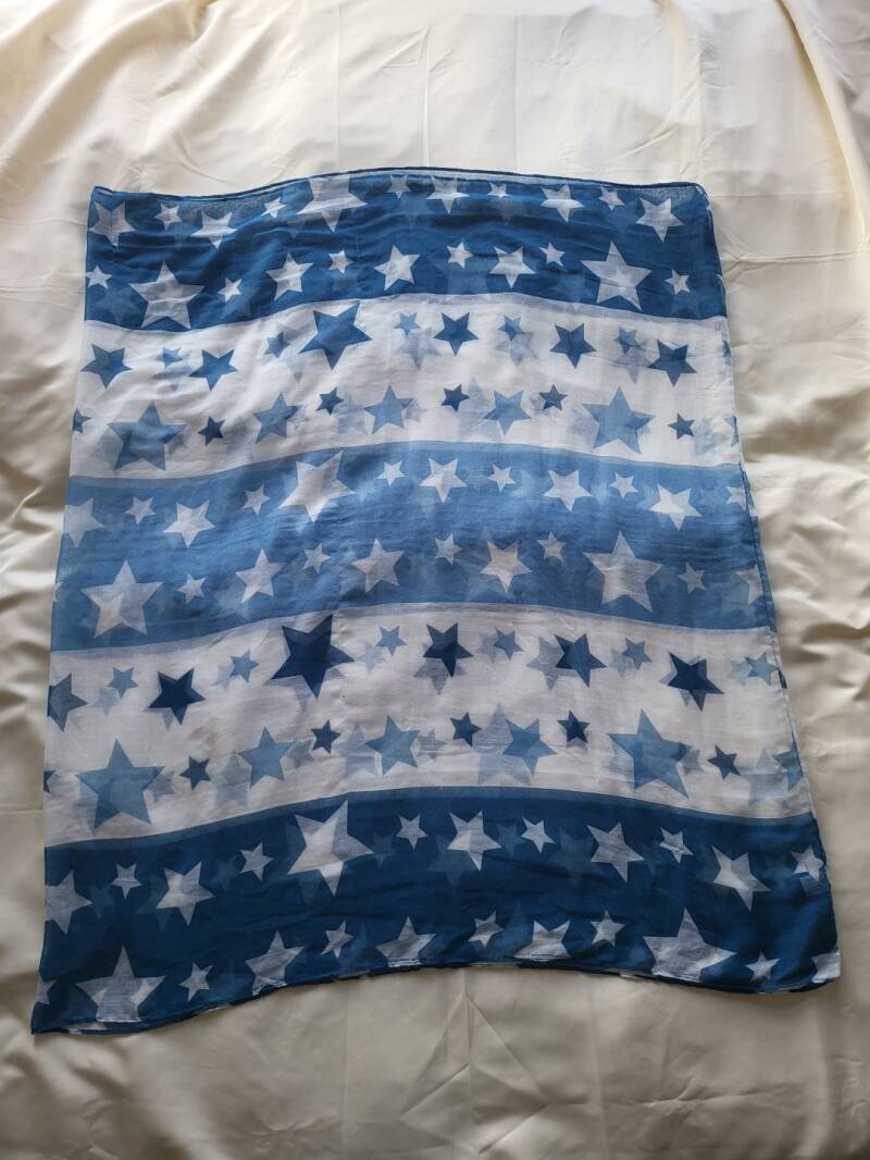 2557 - Dunne doorschijnende sjaal met blauwe en witte sterren